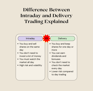 Delivery Trading (Long-Term): You keep the shares for longer. You become the owner and can get dividends.